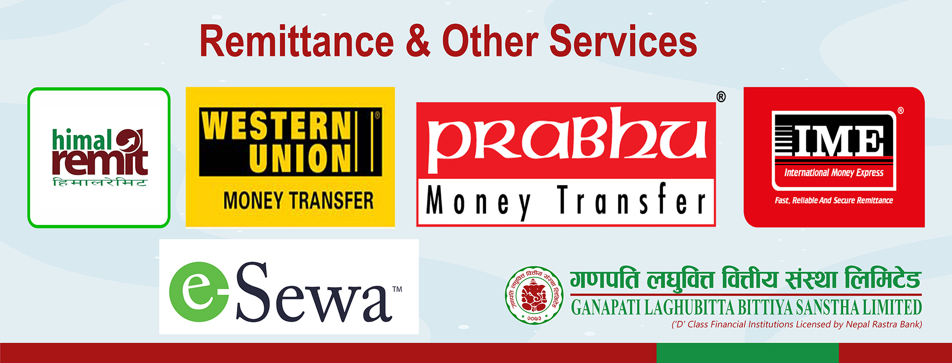 We are Providing remittance services of Himal Remit, Western Union Money Transfer, Prabhu Money Transfer & IME Remit from all our Branch Offices.